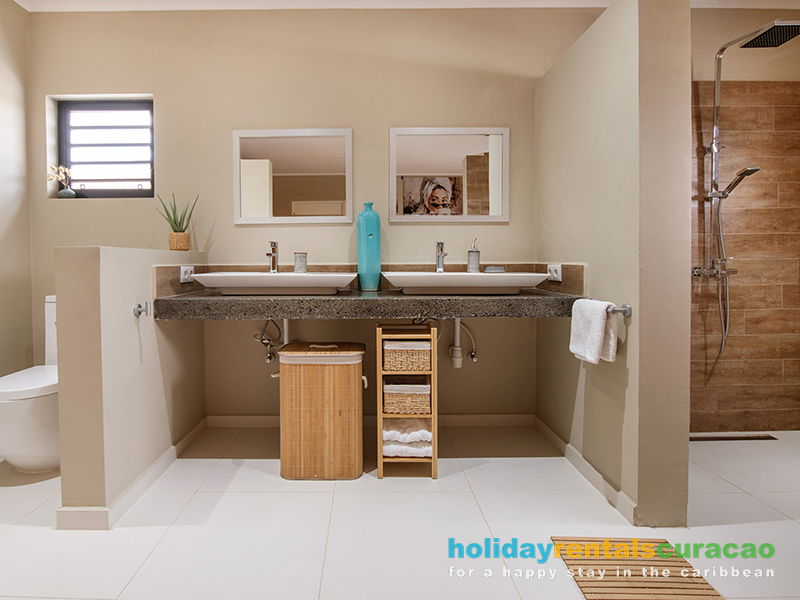 De hele villa is rondom voorzien van shutters dus het waait altijd heerlijk door binnen. Luxe boxspringbedden, zeer ruime inloopdouches, dubbele wasbakken in beide slaapkamers en lekker veel bergruimte in de laundry / bijkeuken. Een oase van rust en comfort op steenworp afstand van het levendige Jan Thiel Beach!