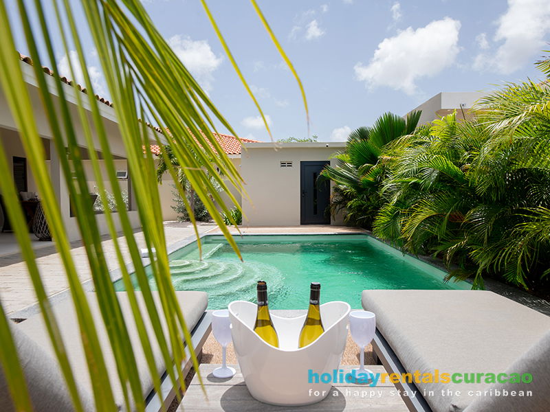 Nieuw! 4 persoons villa met privé zwembad op 3 minuten rijden van het strand van Jan Thiel en gelegen naast Marbella Estate.